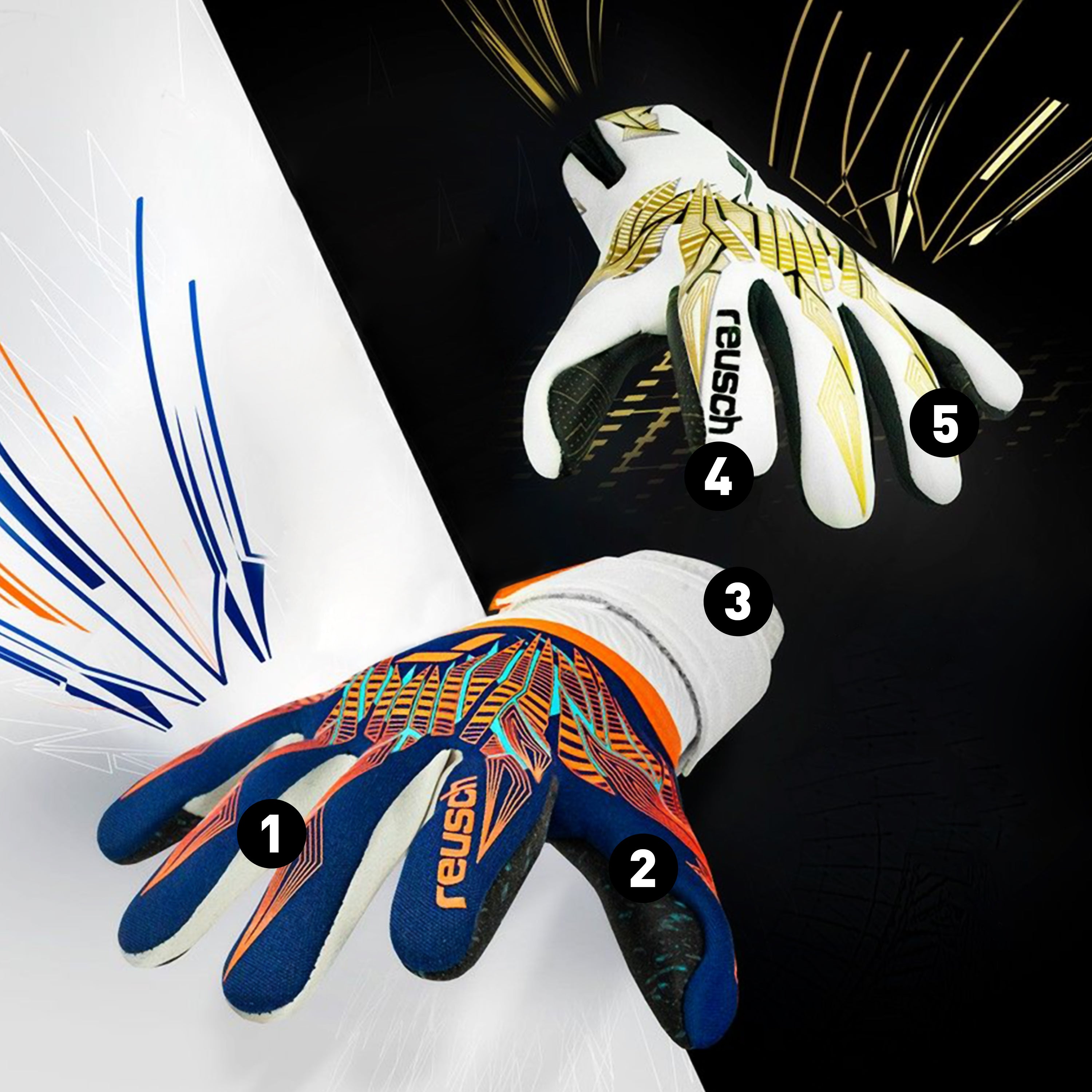 Based on five individually removable, lightweight and highly bendable protection spines, the Reusch exclusive Ortho-Tec™ system adapts to the natural movements of the fingers and blocks them before being pushed backwards into the injury zone.