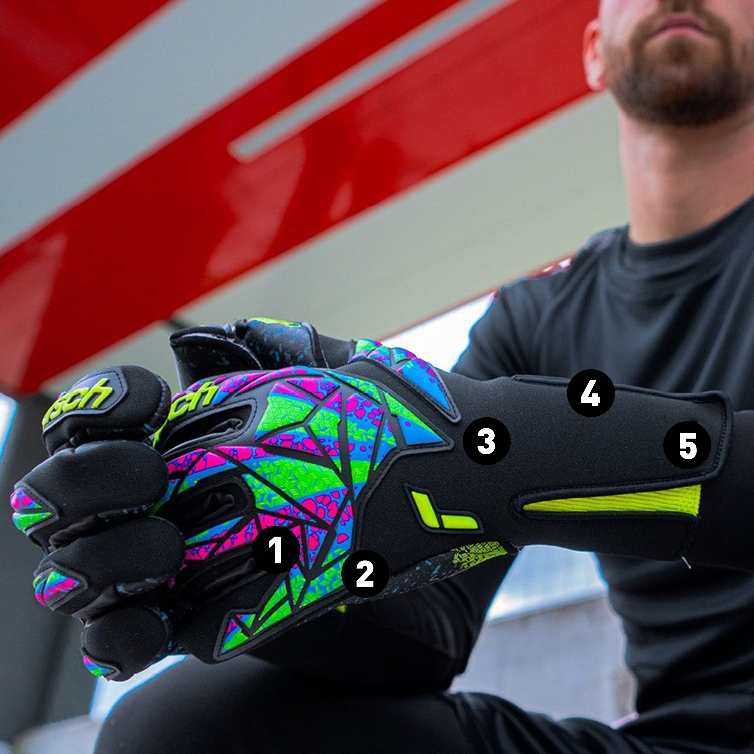 The new patented AdaptiveFlex Closure System provides flexibility as well as the supportive and tight fit around the wrist adaptive to the wrist thickness of each goalkeeper at the same time.